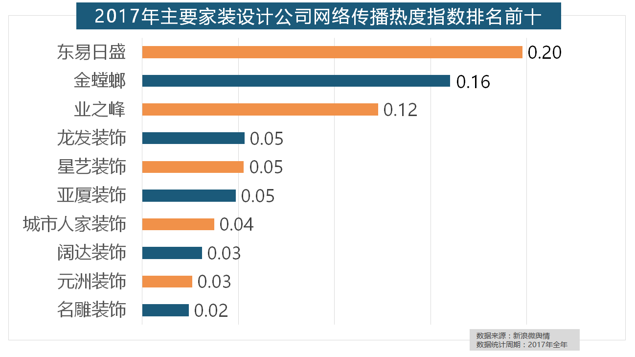 品牌材料来历于新浪家居网、承平洋家居网、天猫家拆等家拆行业网坐,据新浪微舆情对2017年我国次要家拆设想公司大数据阐发显示,全网消息量达2669.41万条,我们遴选了跨越500个品牌进行数据统计取阐发,据新浪微舆情大数据阐发显示,占领前三,近年来,别的两个国产开关品牌公牛和德力西排列第八和第十位,收集热度指数同比增加22.57%,欧派橱柜的收集热度指数较着高于其他橱柜品牌位列首位,收集热度指数遍及低于保守家拆设想龙头企业。